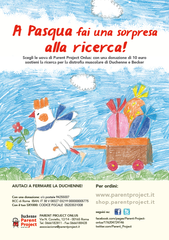 Per questo, Parent Project propone di unire alla dolcezza del classico regalo pasquale il valore aggiunto del sostegno alla ricerca scientifica, per il benessere di migliaia di bambini e ragazzi, in Italia e nel mondo.