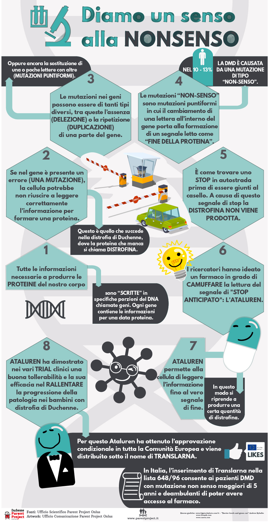 Le immagini insieme a frasi brevi ed efficaci, ci guideranno nell’approfondimento di concetti legati alla distrofia muscolare di Duchenne e Becker.