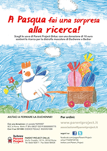 Parent Project onlus, l’associazione di genitori di bambini e ragazzi affetti da distrofia muscolare di Duchenne e Becker, promuove la campagna nazionale di raccolta fondi “Fai una sorpresa alla ricerca!” per sostenere la ricerca sulla distrofia muscolare di Duchenne e Becker, grave malattia genetica degenerativa che si manifesta in età infantile.