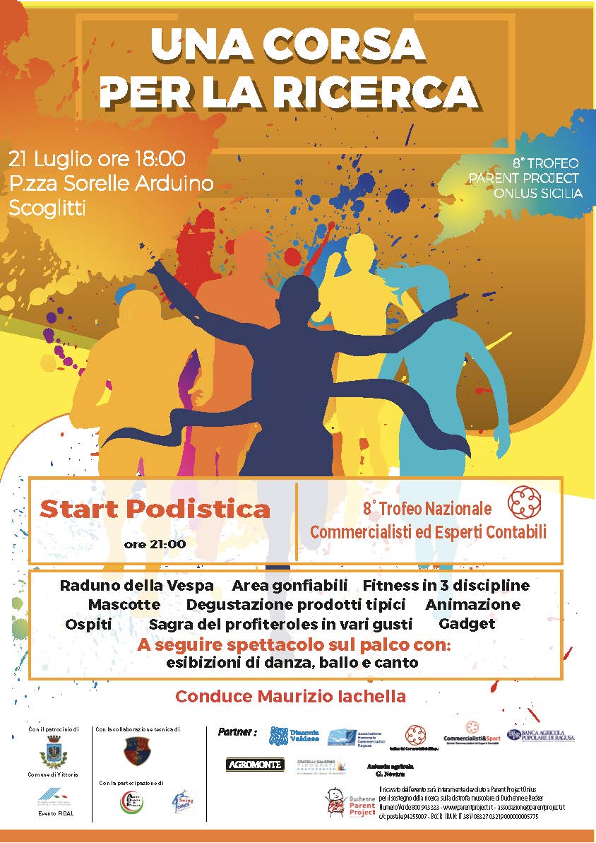 Venerdì 21 luglio, a partire dalle ore 18, si terrà, a Scoglitti, l’ottava edizione del trofeo Parent Project “Una corsa per la ricerca”. La manifestazione, organizzata da Parent Project onlus con l’assistenza tecnica della società podistica Barocco Running Ragusa, avrà la finalità di sostenere progetti di ricerca scientifica sulla distrofia muscolare di Duchenne e Becker e comprenderà una corsa agonistica di 7 km.