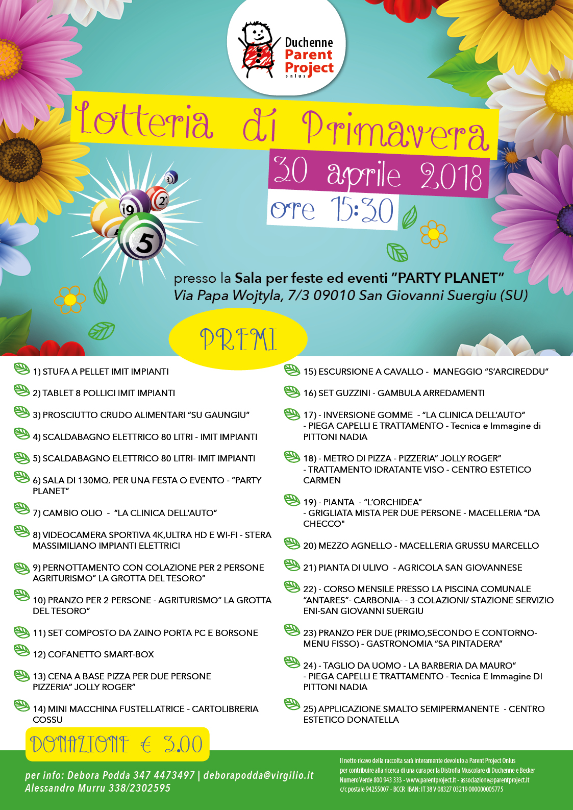 Lunedì 30 aprile 2018 si è svolta l’estrazione dei biglietti vincitori della lotteria solidale organizzata da Parent Project nel territorio di San Giovanni Suergiu.