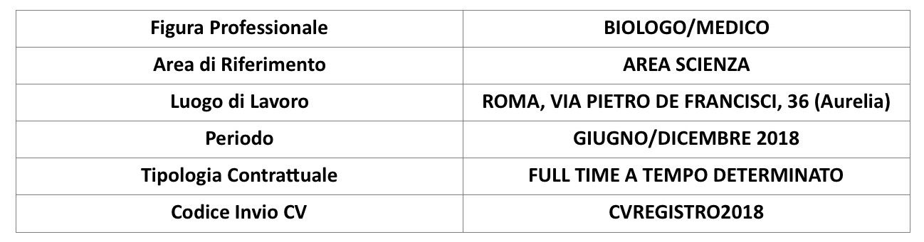 - Laurea Magistrale in Biologia in ambito Molecolare o Biomedico o Laurea in Medicina e chirurgia;