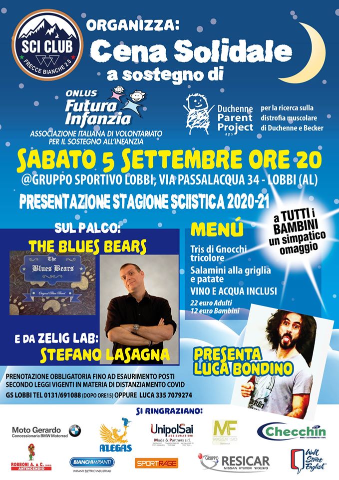 Dopo il successo della recente serata del 31 luglio, il gruppo Sportivo di Lobbi (AL) organizza un nuovo evento solidale, che si svolgerà sabato 5 settembre, dalle ore 20, presso i locali di via Passalacqua, 34, che comprendono ampi spazi all’aperto.