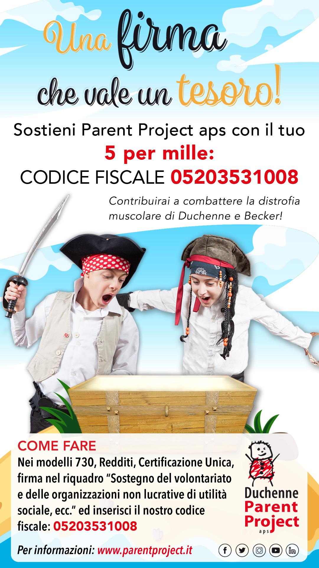 È al via l’edizione 2021 della campagna 5 per mille “Una firma che vale un tesoro” di Parent Project aps.